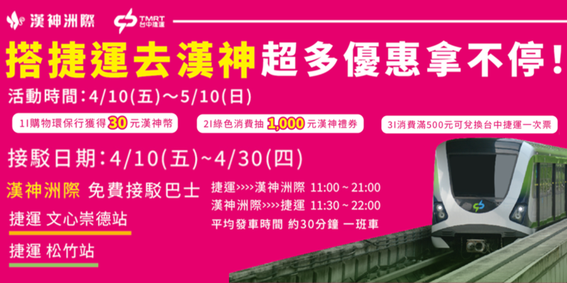 中捷 X 漢神推出專屬優惠,台中捷運幫你整理好啦👇