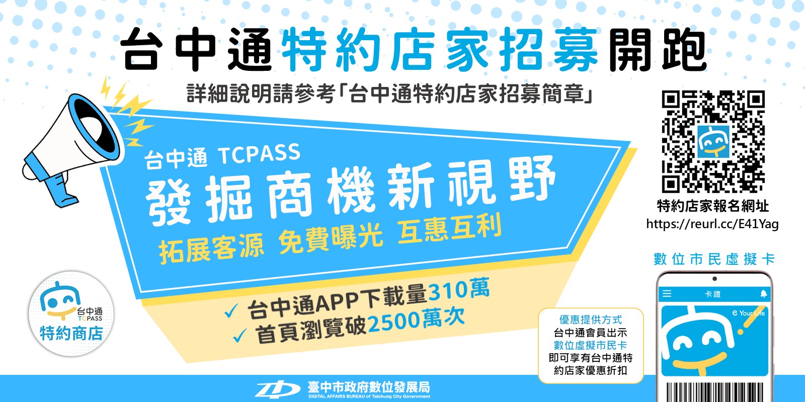 - (一) 資訊曝光:各特約店家之介紹及優惠方案等資訊,將置於「台中通」官方平台上供民眾查詢。