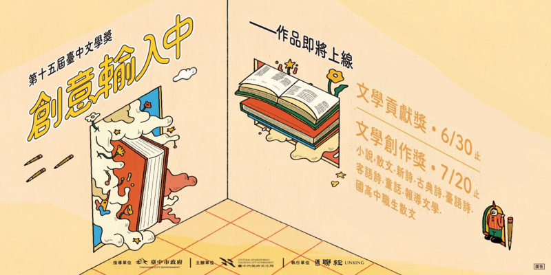 台中市政府文化局主辦「2026第十五屆台中文學獎」徵件正式開跑!今年以「創意輸入中——作品即將上線」為主題,邀請全球創作者書寫,將腦海中的靈感轉化為動人文字,總獎金高達168萬元,即日起正式開放收件,歡迎加入「創意輸入中」的行列,以書寫回應生活、刻畫時代,讓作品正式上線,徵件截止時間為7月20日。